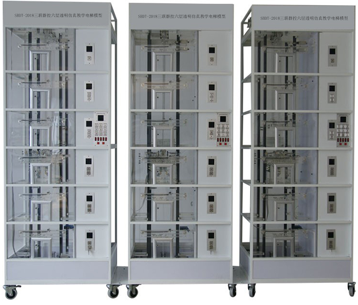 三聯(lián)群控六層透明仿真教學(xué)電梯模型該電梯實(shí)訓系統按照實(shí)際電梯設計,功能俱全。采用最常見(jiàn)的升降式電梯結構,設計為六層結構,共3臺,每臺可獨立運行、可聯(lián)網(wǎng)運行。電梯主體材料采用透明有機玻璃制造,能看清楚電梯內部結構以及電梯運行過(guò)程的每個(gè)動(dòng)作,內部結構一目了然。其結構與實(shí)際電梯完全一樣,并具備實(shí)際電梯的所有功能。