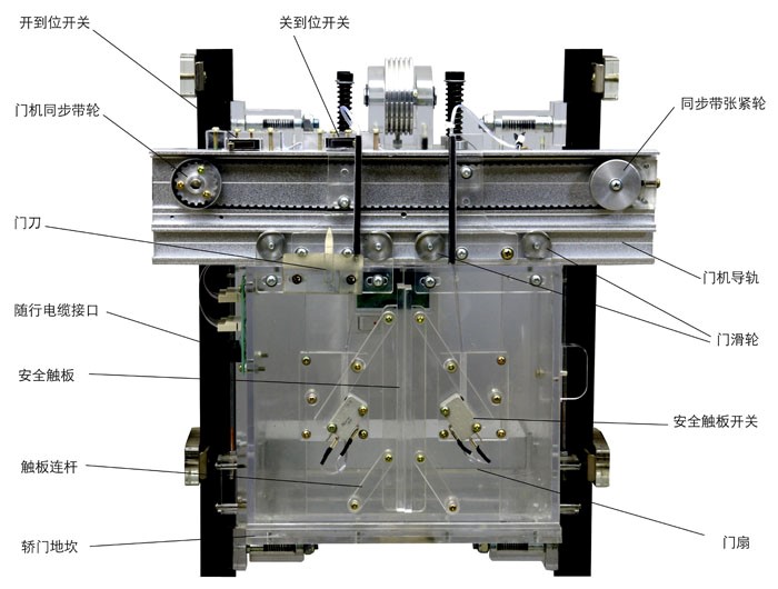 在轎廂門(mén)的邊沿上,裝有活動(dòng)的安全觸板。當門(mén)在關(guān)閉過(guò)程中,安全觸板與乘客或障礙物相接觸時(shí),通過(guò)與安全觸板相連的聯(lián)桿,觸及裝在轎廂門(mén)上的微動(dòng)開(kāi)關(guān)動(dòng)作,使門(mén)重新打開(kāi),避免事故發(fā)生。