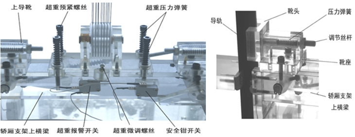 本公司設計的透明限速器,能調整到電梯模型實(shí)現限速器觸發(fā)安全鉗制動(dòng)所需要的速度,真實(shí)演示電梯安全運行保護功能(電梯模型轎廂運行速度低于實(shí)際電梯的速度20-30倍)。由于實(shí)際電梯無(wú)法實(shí)現在故障狀態(tài)下的超速運行,因此永遠無(wú)法真實(shí)演示限速器觸發(fā)安全鉗制動(dòng)的安全運行保護功能,讓學(xué)生觀(guān)察了解安全運行保護機電聯(lián)合控制的過(guò)程。