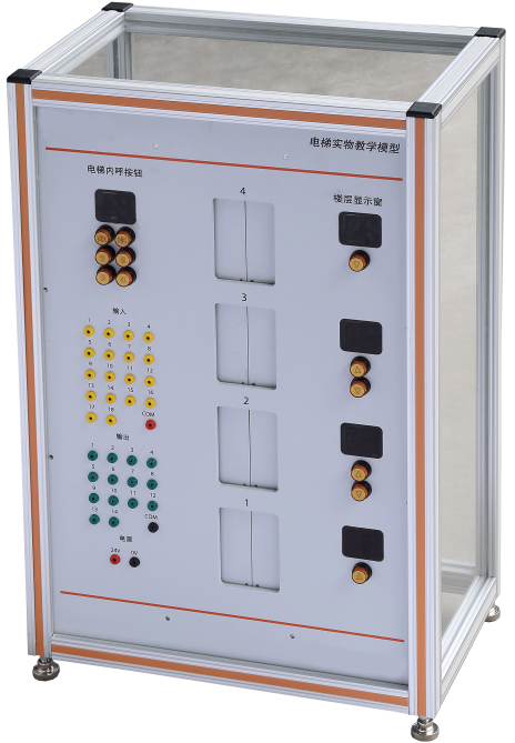 7.樓層顯示窗:它安裝在電梯模型面板的右側,通過(guò)操作帶有向上或向下箭頭的按鈕可以讓轎廂到達你所在的樓層,并可以顯示電梯轎廂運行位置。