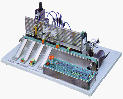 該裝置采用臺式結構,配有PLC、傳感器(光電式、電感式、顏色、磁感應式)、旋轉編碼器、單相交流電動(dòng)機、輸送帶、進(jìn)口電磁閥,減壓閥,空氣濾清器,氣壓指示表等。是一套模擬工業(yè)自動(dòng)化生產(chǎn)物料分揀過(guò)程的微縮模型,可以實(shí)現不同材料的自動(dòng)分選和歸類(lèi),并由上位計算機監控。
