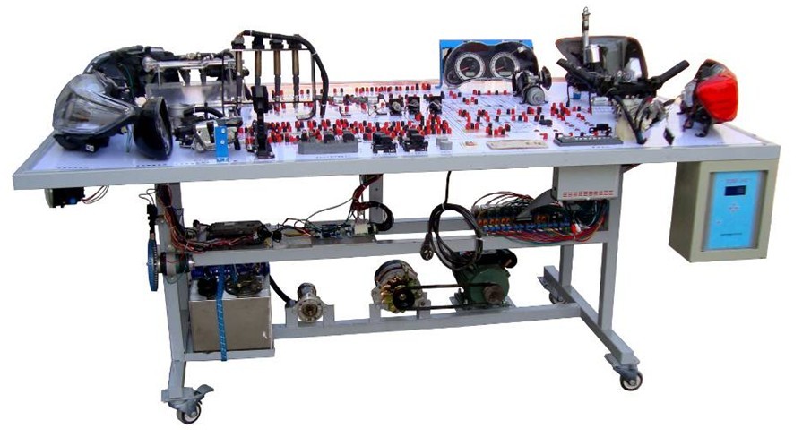 汽車(chē)電氣設備實(shí)訓室。汽車(chē)電器設備實(shí)訓室包含有汽車(chē)燈光系統、車(chē)載網(wǎng)絡(luò )系統、全車(chē)電器系統、汽車(chē)啟動(dòng)系統、汽車(chē)空調系統、全車(chē)線(xiàn)路試驗臺、等實(shí)訓教學(xué)設備。該實(shí)訓室可以承擔《汽車(chē)構造》、《汽車(chē)電器設備》、《汽車(chē)電控系統》、《汽車(chē)檢測與診斷》等課程的實(shí)踐教學(xué)任務(wù)?梢杂糜谘芯、分析全車(chē)電器系統、燈光系統、儀表系統等電器設備的電路及功能。利用這些系統進(jìn)行實(shí)踐教學(xué),使學(xué)生熟悉汽車(chē)電器的結構和工作原理,掌握各個(gè)系統的基本組成電路,掌握主要電路的檢測方法和系統的故障特征,從而具有一定的檢測和調校能力。