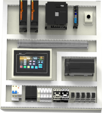 采用萬(wàn)能網(wǎng)孔工藝設計,板材采用2.0mm厚優(yōu)質(zhì)鋼板折彎后焊接而成,表面靜電噴塑處理。掛板安裝有低壓電器等,所有器件端口引至接線(xiàn)端子,可與應用模塊配合,完成接線(xiàn)、編程、調試等實(shí)訓。