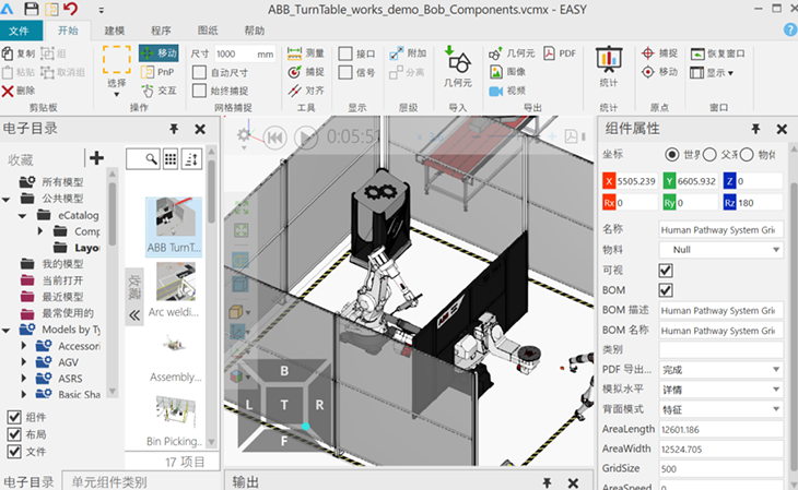 ●導入CAD中建立的機器人與生產(chǎn)線(xiàn)組件的三維模型,支持自定義組件的構建塊幾何,行為和屬性