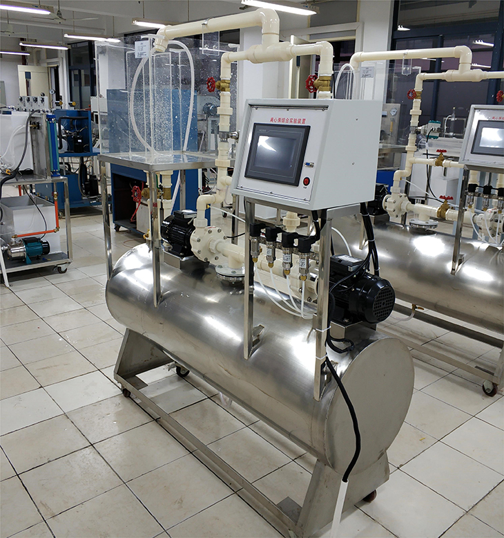 離心泵性能綜合實(shí)驗裝置,離心泵性能綜合實(shí)訓臺,能夠進(jìn)行單泵性能實(shí)驗,測定恒定轉速條件下泵的揚程(H)、軸功率(N)以及效率(η)與泵的流量(Q)之間的泵特性曲線(xiàn)。能夠改變調節閥開(kāi)度,測定流量調節閥某一開(kāi)度下管路特性曲線(xiàn)。能夠改變水泵轉速,測定不同轉速條件下泵的揚程(H)、軸功率(N)以及效率(η)與泵的流量(Q)之間的泵特性曲線(xiàn)。