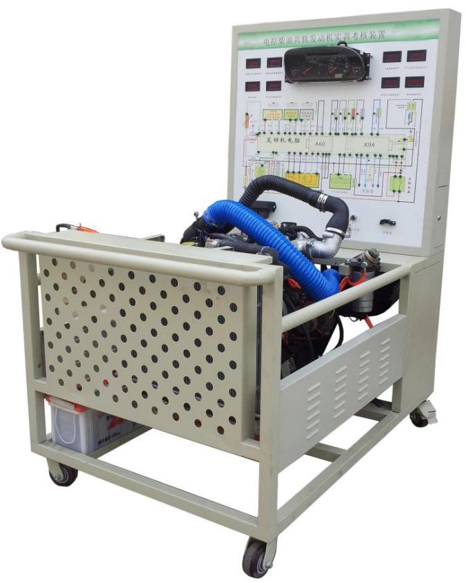 新柴電控共軌柴油發(fā)動(dòng)機總成、原車(chē)發(fā)動(dòng)機控制電腦、組合儀表、防盜電腦、發(fā)動(dòng)機起動(dòng)運行所有相關(guān)的原車(chē)附件、故障設置和排除系統、原車(chē)電路原理圖板及檢測端子、60AH大容量蓄電池、大容量不銹鋼油箱、發(fā)動(dòng)機加速機構、控制面板柜、可移動(dòng)臺架、臺架電源總開(kāi)關(guān)、OBD診斷座、散熱系統、任務(wù)驅動(dòng)教學(xué)模式的實(shí)訓指導書(shū)及臺架操作說(shuō)明書(shū)。