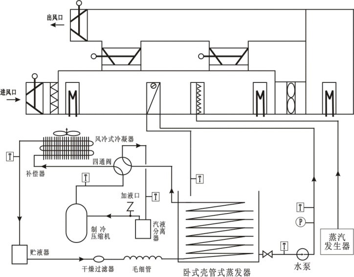 綜合性;采用國內先進(jìn)的二次回風(fēng)系統,在同一臺實(shí)驗臺上完整的完成8種制冷系統工況