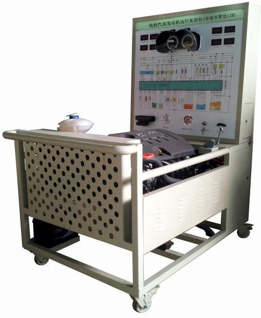 該設備采用翻新豐田卡羅拉1ZR電控汽油發(fā)動(dòng)機總成及運行附件的固定臺架和運行檢測控制面板臺架兩部分組成。