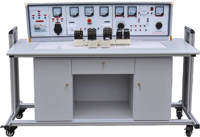 電源控制柜具有三相漏電開(kāi)關(guān),十分醒目的帶自鎖急停按鈕等,以保證實(shí)驗人員人身及實(shí)驗設備的安全。有表指示工作電流及電壓、功能齊全。最巧妙的是實(shí)驗元器件均已裝在元件盒上,實(shí)驗時(shí)不需螺絲固定僅需把元件盒隨意插入通用底板即可連線(xiàn)實(shí)驗,大大提高實(shí)驗速度。示教臺上立式演示屏能使學(xué)生非常清楚的視聽(tīng)教師講解。除能完成交流電機拖動(dòng)控制實(shí)驗內容外,能完成教學(xué)大綱要求的基礎直流電機實(shí)驗。該設備研制成功,解決了廣大學(xué)校直流電機實(shí)驗元器件難以購置、難以管理、難以開(kāi)出實(shí)驗課的煩惱。該設備把交直流電機實(shí)驗有機地融于一體,節省實(shí)驗室,節省管理人員,節省資金。本設備安全可靠,實(shí)驗操作方便,是較完善的電力拖動(dòng)實(shí)驗室設備。該設備是廣大學(xué)校一步到位、上規模、上檔次的理想選擇。