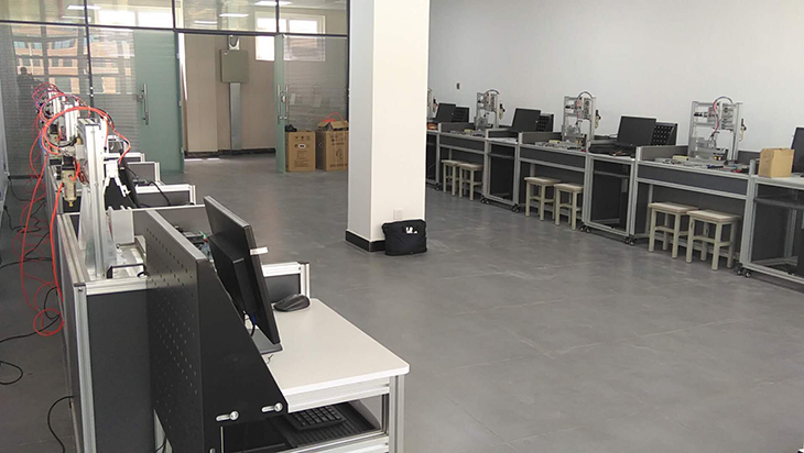 配置雙軸機器人作為裝配的執行機構,具有X軸、Y軸兩個(gè)方向的執行能力,可完成智能抓取物料放料等功能;