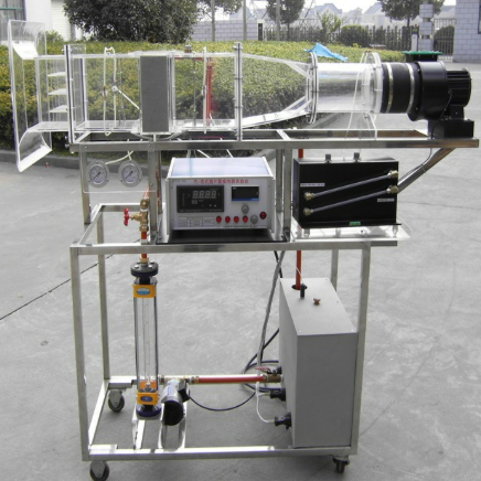 循環(huán)防腐水泵,轉子流量計,翅片管式換熱器,風(fēng)洞實(shí)驗段,離心式風(fēng)機,自動(dòng)調節風(fēng)門(mén),笛形管及差壓測風(fēng)速裝置,加熱由固體調壓模塊無(wú)級調節,控制測試儀表箱,不銹鋼加熱水箱,巡檢儀顯示溫度、水和風(fēng)的阻力及風(fēng)速,不銹鋼臺架及控制屏。