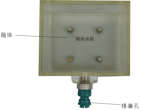 2、輔助油箱采用了封閉箱體結構,外殼材料采用進(jìn)口透明有機玻璃,在輔助油箱的上端配有螺旋蓋油孔,螺旋蓋上設有排氣孔。下端有透明有機材料制造的排油閥。