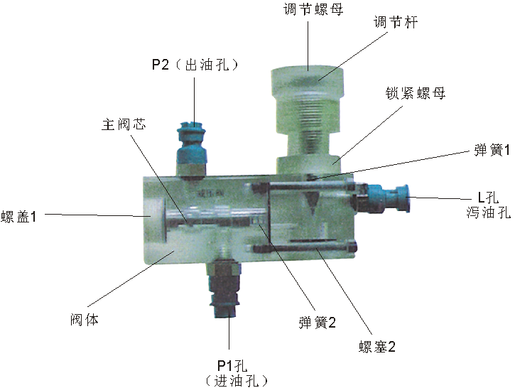 2、單向閥結構上參考了國產(chǎn)I--63B型板式單向閥,其閥體,螺塞等采用了進(jìn)口透明有機玻璃材料精制而成,閥芯采用了45#中碳鋼材料,并配合彈簧,油接頭,密封圈等標準件裝配而成,通過(guò)它可明確地觀(guān)察到活塞、彈簧、油孔等結構及其運行過(guò)程,具有形象逼真,性能可靠等優(yōu)點(diǎn)。它即可作為教學(xué)模型,也可以作為液壓實(shí)驗元件進(jìn)行實(shí)驗演示。