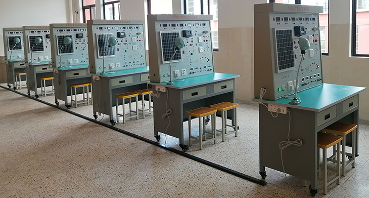 太陽(yáng)能光伏發(fā)電實(shí)驗實(shí)訓裝置是基于太陽(yáng)能發(fā)電,電能的整流、儲存和逆變于一體的實(shí)訓裝置。系統分別由模擬太陽(yáng)裝置、光伏電池、控制器模塊、離網(wǎng)逆變模塊、同步并網(wǎng)模塊、儀表監測模塊、交直流負載模塊,7 個(gè)部分組成
