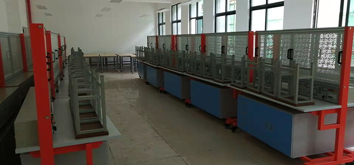 2、實(shí)訓桌桌面采用25mm麻灰色高密度層壓板封邊特制,有效提高絕緣等級;實(shí)驗桌底部裝有至少4個(gè)導向輪,方便實(shí)訓臺架移動(dòng);