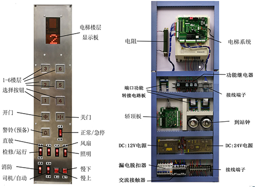 教學(xué)電梯的電氣控制系統是采用PLC和交流變頻調速控制,其硬件結構的組成及功能與實(shí)際電梯完全一樣,具有自動(dòng)平層、自動(dòng)開(kāi)關(guān)門(mén)、順向響應轎內外呼梯信號、直駛、電梯安全運行保護等功能,以及電梯停用、急停、檢修、慢上、慢下、照明和風(fēng)扇等特殊功能。