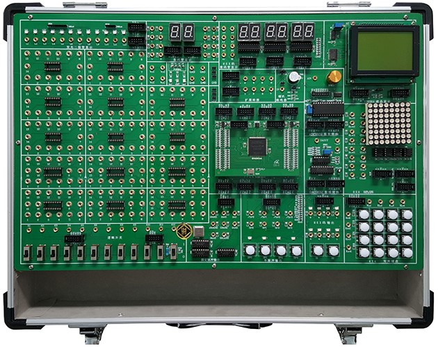 數字電路、EDA技術(shù)實(shí)驗設計系統由鋁木合金箱體、開(kāi)關(guān)電源、常用信號源、常用模數接口、人機接口、接插式CPLD/FPGA下載板和實(shí)驗電路區等組成。其中信號源由高性能單片機產(chǎn)生,穩定可靠。全部的實(shí)驗用信號線(xiàn)的連接采用高可靠杜邦線(xiàn)和單根2號插針線(xiàn),避免接觸不良現象反生。擴展設計的CPLD/FPGA開(kāi)發(fā)板為用戶(hù)開(kāi)展創(chuàng )新設計提供了良好的硬件平臺。本實(shí)驗箱適用于本專(zhuān)科院校所有電類(lèi)和非電類(lèi)專(zhuān)業(yè)《數字電子技術(shù)》、《數字系統設計》、《EDA技術(shù)設計》等課程的實(shí)驗、實(shí)訓和創(chuàng )新設計,有出版社出版的配套教材。