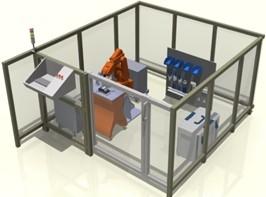 安全護欄:隔離護欄,高1000mm,框架采用2mm厚灰色棟梁鋁合金型材,鋼化玻璃10mm厚;工作站全部通透利于觀(guān)察,玻璃中間沒(méi)有隔斷;并安裝一個(gè)側開(kāi)門(mén);門(mén)上安裝安全檢測元件,機器人自動(dòng)運行必須在門(mén)關(guān)閉狀態(tài)下進(jìn)行;系統工作站安裝有3個(gè)急停按鈕,分別位于操作控制臺、模型安裝臺、隔離護欄上,以備緊急情況使用。