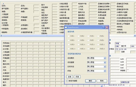 軟件可實(shí)現對內機的控制,,可以對1-64臺內機的狀態(tài)進(jìn)行設定。