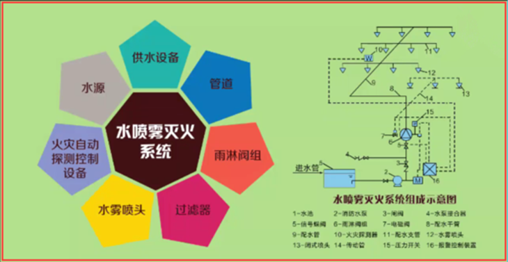 由1套自動(dòng)噴水滅火系統實(shí)訓裝置,包含濕式、干式、預作用、雨淋四種類(lèi)型,并且具備室內外消火栓系統(全部實(shí)物)、1套防排煙系統實(shí)訓裝置和1套防火門(mén)實(shí)訓裝置組成。