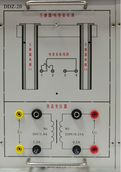 提供鐵芯變壓器一只(50VA、36V/220V)、電流插座等,原、副邊均設有保險絲及電流插座,方便測試并能可靠保護防止變壓器損壞。
