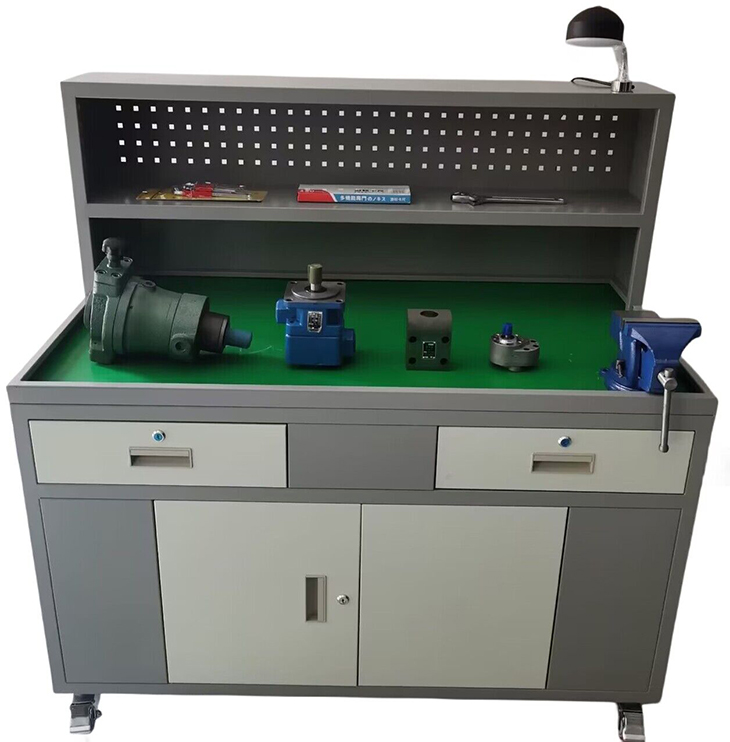6、實(shí)訓臺:采用鈑金結構設計,表面為雙層亞光密紋噴塑工藝處理,臺面采用下凹設計,增加臺虎鉗,以及絕緣防滑墊,同時(shí)為液壓閥拆裝時(shí)提供一個(gè)良好的接油、防震平臺。
