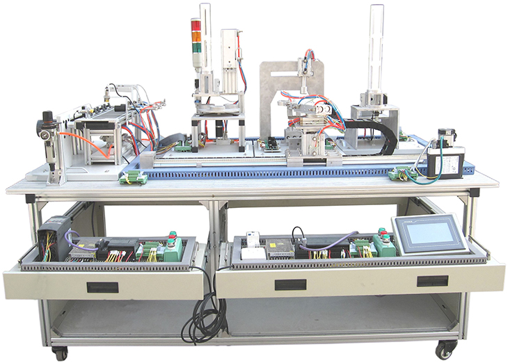 光機電氣一體化實(shí)訓裝置由鋁合金導軌式實(shí)訓臺、典型的機電一體化設備的機械部件、PLC模塊、變頻器模塊、按鈕模塊、電源模塊、模擬生產(chǎn)設備實(shí)訓模塊、接線(xiàn)端子排和各種傳感器、計算機等組成。整體結構采用開(kāi)放式和拆裝式,實(shí)訓裝置用于機械部件組裝,可根據現有的機械部件組裝生產(chǎn)設備,也可添加機械部件組裝其他生產(chǎn)設備,使整個(gè)裝置能夠靈活的按教學(xué)或競賽要求組裝具有生產(chǎn)功能的機電一體化設備。模塊采用標準結構和抽屜式模塊放置架,互換性強;按具有生產(chǎn)性功能和整合學(xué)習功能的原則確定模塊內容,使教學(xué)或競賽時(shí)可方便的選擇需要的模塊。設備需完全符合電工電子全國職業(yè)技能大賽所要求,同時(shí)還要求具有可拓展功能,可以組成更加大型的生產(chǎn)模擬系統,以配合各個(gè)用戶(hù)學(xué)校不同層次,不同專(zhuān)業(yè)的教學(xué)及培訓要求。