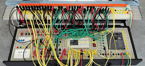 3.開(kāi)放性:該實(shí)驗裝置PLC模塊I/O端子、變頻器的接線(xiàn)端子、各常用模塊與PLC的連接端子、傳感器、按鈕開(kāi)關(guān)、指示燈元件等端子全部開(kāi)放,均采用護套插座導線(xiàn)連接,可進(jìn)行電氣線(xiàn)路控制、電氣線(xiàn)路設計等內容實(shí)訓。