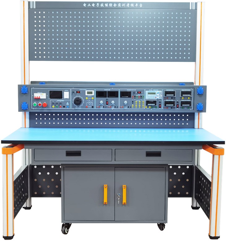 電工電子技能綜合實(shí)訓裝置由實(shí)驗主機箱、儀器架、實(shí)訓桌、移動(dòng)矮柜、電工電子實(shí)訓套件、學(xué)生凳等組成。實(shí)驗裝置支架與實(shí)驗桌可組合、可拆裝。支架與桌腳一體,鋁合金結構。