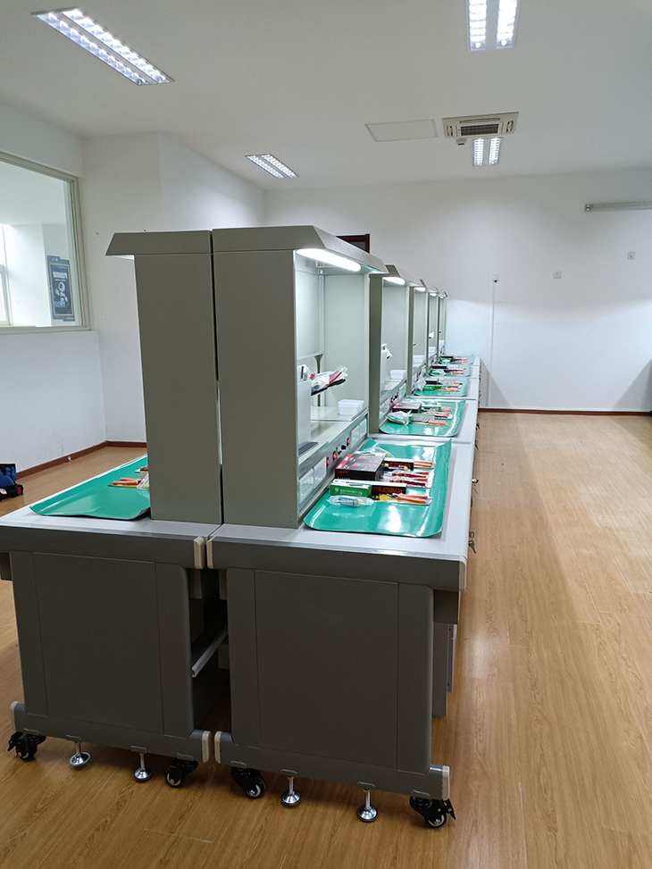 3.經(jīng)濟性此實(shí)訓臺為2人座,裝有照明日光燈、看板(用來(lái)夾資料)、儀表臺、插座,2個(gè)抽屜。學(xué)生在這里可以仿真生產(chǎn)過(guò)程(如:工藝流程的編制、線(xiàn)路板的焊接、線(xiàn)路板的調試、整體產(chǎn)品的組裝),組裝后的裝配線(xiàn)安全、可防靜電。
