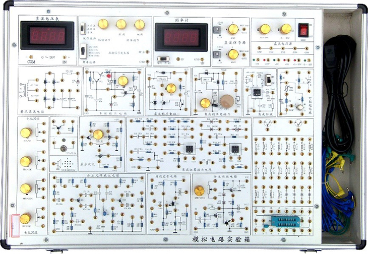 模擬電路實(shí)驗箱是根據《高等工業(yè)學(xué)校電子技術(shù)基礎》教學(xué)大綱中確定的教學(xué)實(shí)驗要求為基礎,汲取了眾多專(zhuān)業(yè)教師的教學(xué)經(jīng)驗,并綜合了眾多同類(lèi)產(chǎn)品的優(yōu)點(diǎn)而設計的。它函蓋了《模擬電子技術(shù)基礎》課程全部實(shí)驗內容,既為初學(xué)者提供了驗證性實(shí)驗電路,又為課程設計提供了擴展平臺。
