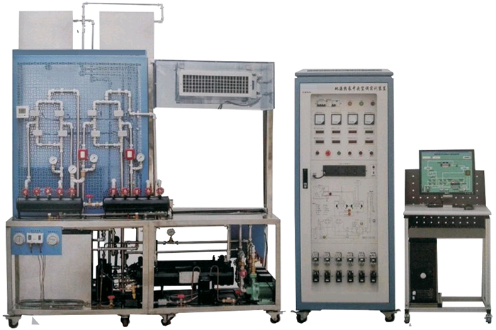 地源熱泵空調系統由制冷機組、模擬水井、空調系統、生活衛生供水系統、控制系統、實(shí)訓臺等組成。實(shí)訓臺采用不銹鋼底架結構,結構堅固,造型美觀(guān)大方;桌面用于安裝電源控制屏并提供一個(gè)寬敞舒適的工作臺面。