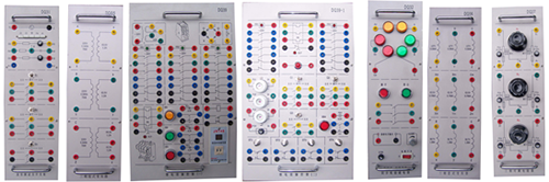 提供中間繼電器(線(xiàn)圈電壓220V)二只,熱繼電器一只,熔斷器三只,轉換開(kāi)關(guān)三只,按鈕一只,行程開(kāi)關(guān)四只,信號燈、保險絲座各一只。各器件的工作端子均已引到面板上,供實(shí)驗接線(xiàn)用,中間繼電器及熱繼電器的工作狀態(tài)用發(fā)光二極管指示。