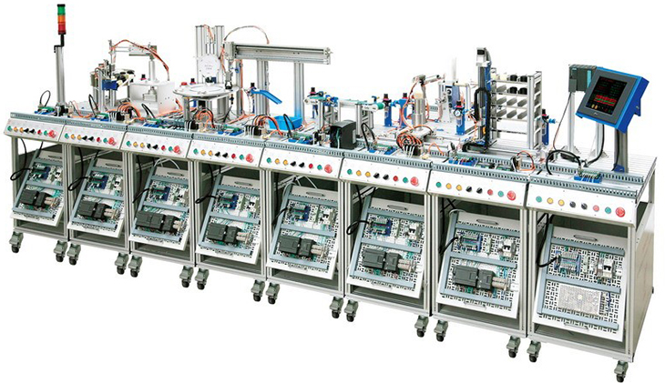 模塊化柔性生產(chǎn)線(xiàn)實(shí)訓系統(八站)MPS網(wǎng)絡(luò )型模塊式柔性自動(dòng)化生產(chǎn)線(xiàn)實(shí)訓系統是一種最為典型的機電一體化、自動(dòng)化類(lèi)產(chǎn)品,它是為職業(yè)院校、教育培訓機構等而研制的,它適合機械制造及其自動(dòng)化、機電一體化、電氣工程及自動(dòng)化、控制工程、測控技術(shù)、計算機控制、自動(dòng)控制等相關(guān)專(zhuān)業(yè)的教學(xué)和培訓。它接近工業(yè)生產(chǎn)制造現場(chǎng)基礎上又針對實(shí)訓教學(xué)進(jìn)行了專(zhuān)門(mén)設計,強化了各種控制和工程實(shí)踐能力。采用了先進(jìn)的總線(xiàn)控制方式,增配有主控PLC、工業(yè)觸摸屏、MCGS工業(yè)組態(tài)監控軟件等,系統更加完整性,更能展現工業(yè)現場(chǎng)的工作狀態(tài)及現代制造工業(yè)的發(fā)展方向。