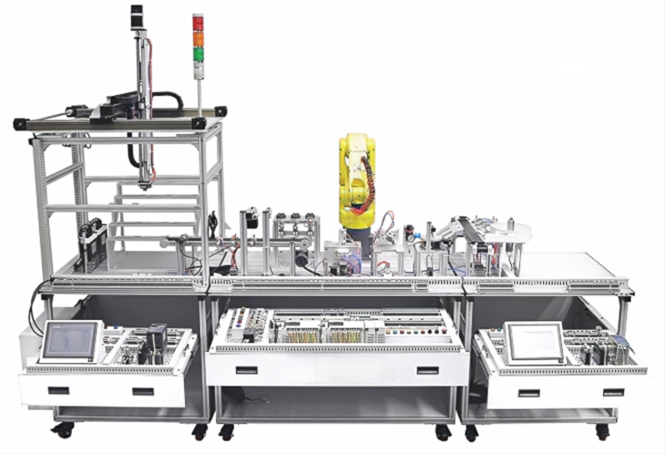 機電一體化智能實(shí)訓設備要求以4個(gè)鋁合金導軌式工作平臺作為基礎平臺,整體結構應采用開(kāi)放式和拆裝式,能夠根據不同形式生產(chǎn)功能要求將多個(gè)實(shí)訓臺組合成不同長(cháng)寬的基礎工作面,然后在基礎平臺上根據現有的機械部件,以模塊化的方式組裝和搭建具有生產(chǎn)功能的機電一體化智能生產(chǎn)線(xiàn)設備,還應能添加其它機械部件組裝其他生產(chǎn)設備,使整個(gè)裝置能夠靈活的按教學(xué)或競賽要求組裝具有生產(chǎn)功能的機電一體化智能生產(chǎn)線(xiàn)設備。