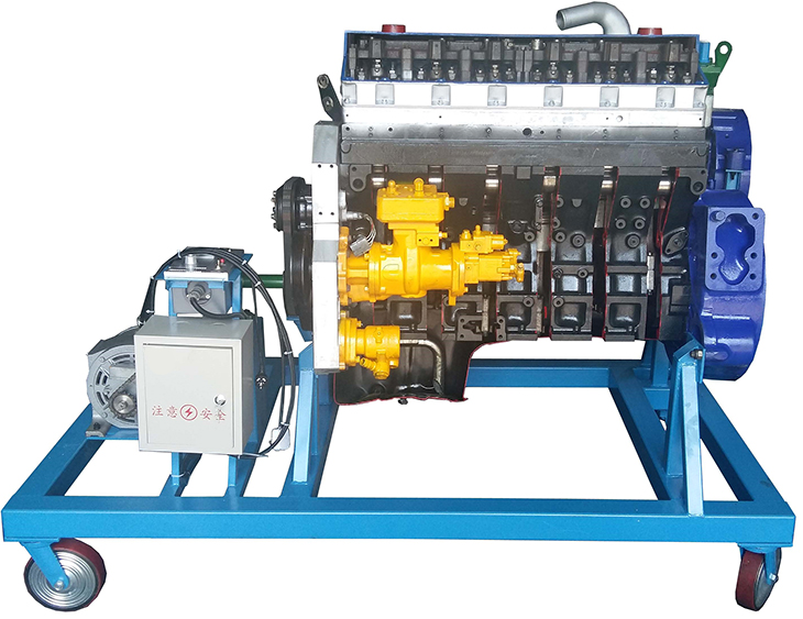 該設備采用翻新康明斯NT855發(fā)動(dòng)機總成進(jìn)行剖面處理,各部件齊全,剖面位置合理,能全面展示發(fā)動(dòng)機內外部結構和部件的運動(dòng)情況,適用于發(fā)動(dòng)機原理和機械機構的教學(xué)。