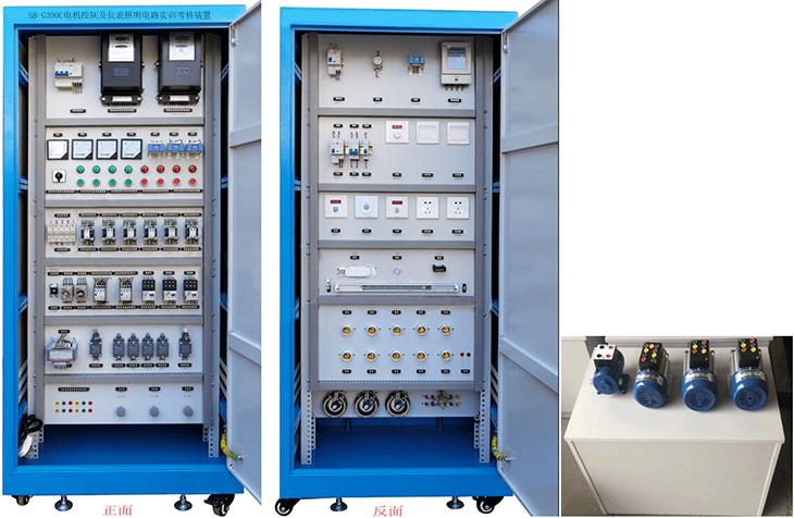 照明及電機控電路實(shí)訓臺、可完成插座和一個(gè)開(kāi)關(guān)控制一盞燈、兩個(gè)雙聯(lián)開(kāi)關(guān)控制一盞燈、日光燈線(xiàn)路的接線(xiàn)、三相異步電動(dòng)機直接啟動(dòng)控制、三相異步電動(dòng)機接觸器點(diǎn)動(dòng)控制線(xiàn)路、三相異步電動(dòng)機接觸器自鎖控制線(xiàn)路、Y-△啟動(dòng)自動(dòng)控制線(xiàn)路等實(shí)訓科目。照明及電機控電路實(shí)訓臺是按照低壓電工安全操作技術(shù)中動(dòng)力、照明考核要求而設計的。該裝置采用配電柜為主體,合理利用柜體的雙面空間,進(jìn)行合理布局,配置可靠的元器件。它既可用于對低壓電工電力拖動(dòng)電路、照明電路、電工儀表實(shí)操技能的實(shí)訓考核。也可作為初、中、高級電工技能考核設備。