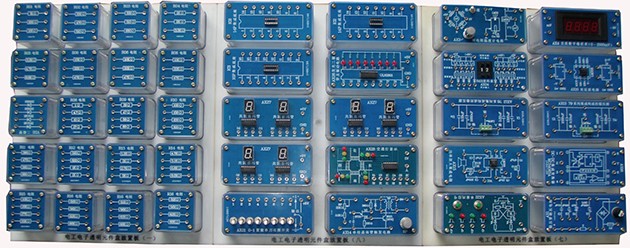 2、由學(xué)生獨立自主去搭建實(shí)驗、實(shí)訓電路,各種模塊精心配置,有多個(gè)應用組合部件,模塊采用透明有機盒,兼作實(shí)物示教,一舉多得。電工電子單元模塊共有200多個(gè),其中不僅包括實(shí)訓指導書(shū)項目所需的單元,還為學(xué)生可能進(jìn)行的創(chuàng )新與探索,配置了較齊全的單元。
