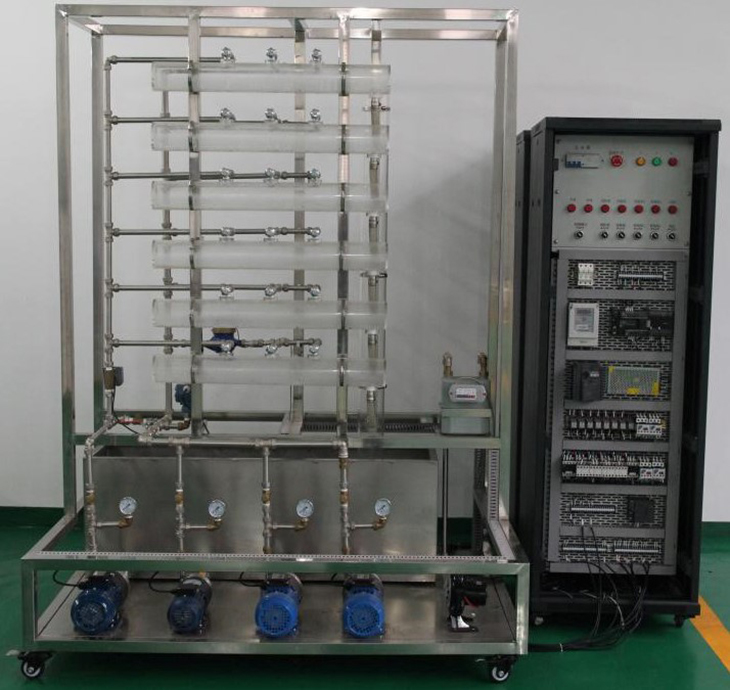 4.控制對象全部使用不銹鋼和有機玻璃器件,保證不生銹、不易老化;模擬六層大樓給水系統,具有有生活水系統和消防水系統兩種水路模型;動(dòng)力系統由四臺水泵構成,其中兩臺常規變頻循環(huán)泵,一臺休眠小泵,一臺消防泵,能夠模擬常規生活供水系統、消防供水系統和夜間小流量供水系統,能夠生動(dòng)模擬大樓給排水系統的典型結構。