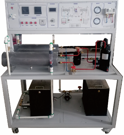 1、采用水冷式機組,配備全封閉式制冷壓縮機、冷凝器、蒸發(fā)器等制冷系統真實(shí)部件,并設有智能溫度調節儀、流量計、壓力表、電壓表、電流表等測量?jì)x表。