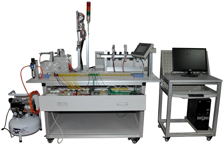 實(shí)訓裝置由由鋁合金導軌式實(shí)訓臺、典型的機電一體化設備的機械部件、PLC模塊、變頻器模塊、按鈕模塊、電源模塊、模擬生產(chǎn)設備實(shí)訓模塊、接線(xiàn)端子排和各種傳感器、計算機等組成。整體結構采用開(kāi)放式和拆裝式,實(shí)訓裝置用于機械部件組裝,可根據現有的機械部件組裝生產(chǎn)設備,也可添加機械部件組裝其他生產(chǎn)設備,使整個(gè)裝置能夠靈活的按教學(xué)或競賽要求組裝具有生產(chǎn)功能的機電一體化設備。模塊采用標準結構和抽屜式模塊放置架,互換性強;同時(shí)還要求具有可拓展功能,可以組成更加大型的生產(chǎn)模擬系統,以配合各個(gè)用戶(hù)學(xué)校不同層次,不同專(zhuān)業(yè)的教學(xué)及培訓要求。