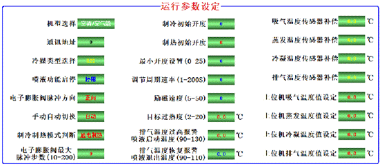 11)顯示界面上29 路參數控制參數設置/查詢(xún):控制器內所有與控制相關(guān)的溫度參數、時(shí)間參數、控制參數、等29個(gè)參數都可以調整,以適應制冷/熱泵/冷庫/水機等設備。
