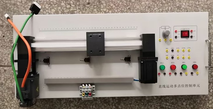 11.小車(chē)運動(dòng)控制實(shí)訓裝置(實(shí)物):由運動(dòng)小車(chē)、滾珠絲桿傳動(dòng)機構、伺服電機及驅動(dòng)器、光電傳感器、接近開(kāi)關(guān)、開(kāi)關(guān)電源等組成,通過(guò)傳感檢測、PLC編程,實(shí)現傳動(dòng)控制、鍵值優(yōu)化比較行走控制、定向控制、定位控制、加減速控制、報警運行控制、點(diǎn)動(dòng)控制、位置顯示控制,該系統外觀(guān)精美,體積緊湊,重量輕,堅固又相對精巧,行程范圍:0.6米,裝有4只光電傳感器、5只接近開(kāi)關(guān)和2只行程開(kāi)關(guān)進(jìn)行位置反饋。