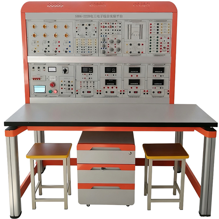 電子電工實(shí)驗平臺由實(shí)驗桌、實(shí)驗臺架、存儲柜、實(shí)驗掛箱組件、配件等組成。