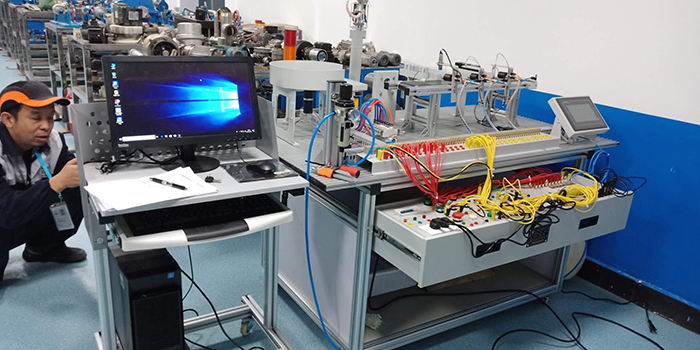 實(shí)訓裝置臺架為鋁合金導軌式,實(shí)訓考核裝置PLC模塊的I/O 端子、變頻器的接線(xiàn)端子、各常用模塊與PLC的連接端子,均與安全插座連接,使用帶安全插頭的導線(xiàn)進(jìn)行電路連接;各指令開(kāi)關(guān)、光電開(kāi)關(guān)、傳感器和指示元件的電路,則通過(guò)端子排進(jìn)行連接。插拔線(xiàn)連接電路與端子牌連接電路相結合,既保證學(xué)生基本技能的訓練、形成和鞏固,又保證電路連接的快速、安全和可靠。