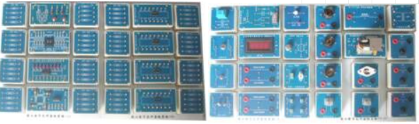 提供一套實(shí)訓模塊,可以完成直流電路、模擬電子技術(shù)、數字電子技術(shù)和電子綜合應用實(shí)訓項目。實(shí)訓模塊面板采用PCB板制作而成,器件和信號接口均已引至板上的專(zhuān)用插座,實(shí)訓模塊有四個(gè)彈性插腳,與專(zhuān)用實(shí)訓孔板配套使用。
