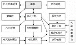 光機電一體化實(shí)訓裝置由型材導軌式實(shí)訓臺,典型機電一體化設備機械部件,PLC模塊,變頻器模塊,按鈕模塊,電源模塊,低壓電器模塊,模擬生產(chǎn)設備實(shí)訓模塊(包含上料機構,搬運機械手,皮帶輸送線(xiàn),物件分揀等)接線(xiàn)端子排,各種傳感器,警示燈和氣動(dòng)電磁閥等組成。整體結構采用開(kāi)放式和拆裝式設計,學(xué)生可以組裝,接線(xiàn),編程和調試由上料機構,搬運機械手機構,皮帶輸送線(xiàn)和物料分揀組成的光機電一體化設備。裝置的總體結構示意圖如圖主所示。