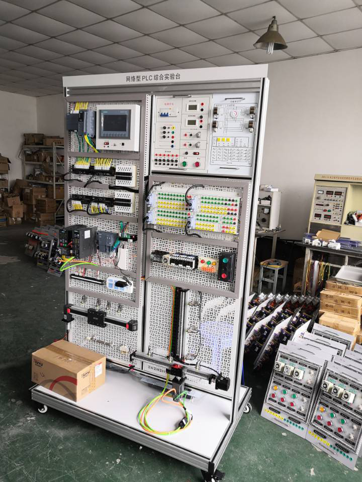 實(shí)訓裝置由S7-1500單元、S7-1200單元、S7-200SMART單元、變頻調速單元、小車(chē)運動(dòng)控制單元、、實(shí)訓組件、電工基礎實(shí)訓單元二維絲桿控制單元、觸摸屏單元、以太網(wǎng)交換機、交流電機等組成。