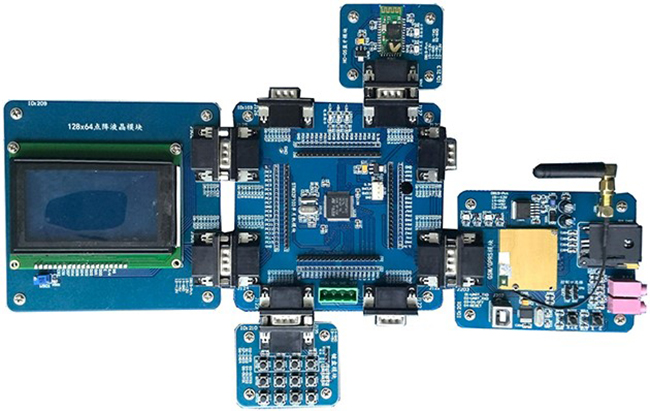 用于通信技術(shù)實(shí)訓課程。根據實(shí)用課題內容,讓學(xué)生自己了解通信過(guò)程,自己調試,最終完成一個(gè)具有實(shí)際功能且具有實(shí)用價(jià)值的產(chǎn)品模型。如:搭建基于GSM模塊、鍵盤(pán)模塊和LCD模塊實(shí)現一個(gè)簡(jiǎn)單的實(shí)用手機系統。
