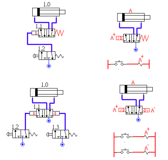 1、單作用氣缸的換向回路